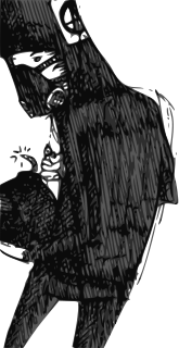 This features a person wearing a black jacket and headphones, standing in front of another person. The individual is holding an object that appears to be a bird or a small animal, possibly a parrot. The scene seems to depict a casual interaction between the two people, with one person potentially showing off their pet or simply engaging in conversation. The black and white drawing style adds a sense of depth and contrast to the image, making it visually appealing.