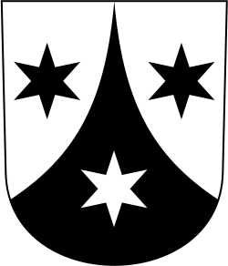 This features a black and white coat of arms, which is an emblem or design used to represent a person, organization, or country. This particular coat of arms has a star pattern on it, with three stars visible in the center and one at each corner. The design appears to be a combination of black and white, giving it a classic and timeless appearance. The use of stars as part of the emblem suggests that this could represent a celestial theme or symbolize unity and guidance. Overall, the coat of arms is an intriguing and visually appealing piece of artwork.