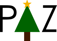 This features a green Christmas tree with a star on top, symbolizing the spirit of peace. The tree is positioned in front of a large letter "Z" that stands out prominently against the background. This festive logo conveys a sense of harmony and goodwill during the holiday season.