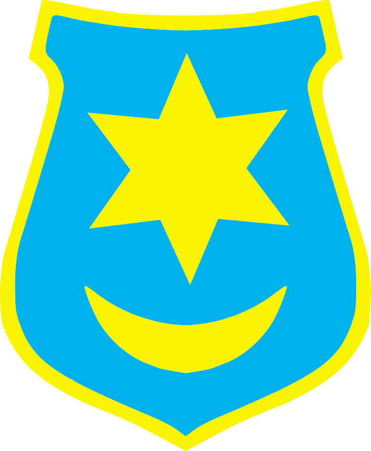 This features a blue and yellow star with a smiley face in the center. This unique design is likely an emblem or logo, possibly representing a specific organization or entity. The colors of the star are predominantly blue, with some yellow accents that add to its visual appeal. The overall appearance of the emblem suggests it could be used for various purposes such as branding, advertising, or even as a symbol of pride and unity.