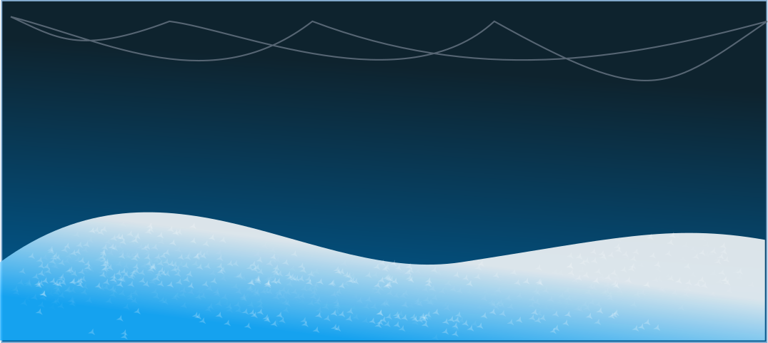 This features a beautiful snowy mountain landscape at night. The sky is dark blue, and the snow on the mountains appears to be shiny and freshly fallen. The scene captures the serene beauty of nature during wintertime, with the snow-covered hills creating a picturesque backdrop against the night sky.