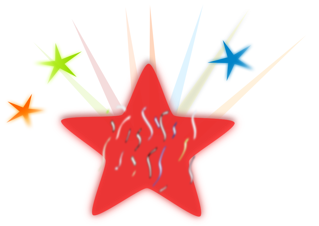 This features a red star with sparkling confetti surrounding it. The star is located in the center of the scene, and the confetti appears to be falling from above, creating an eye-catching visual effect. The colors of the confetti are predominantly blue, green, yellow, and orange, adding vibrancy to the overall composition. This image could potentially represent a celebration or special occasion, as the star and confetti create a festive atmosphere.