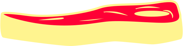 This features a piece of raw meat, possibly resembling a steak or a slice of pizza. It is presented in a close-up view and appears to be the main focus of the picture. The meat has a slightly yellowish hue, indicating that it may have been freshly prepared or recently cooked. The overall composition of the image emphasizes the raw nature of the food item, drawing attention to its texture and appearance.