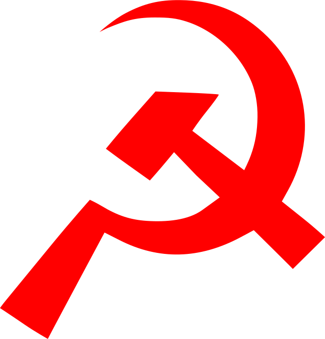 This features a red hammer and sickle icon, which is a symbol of communism. The hammer is prominently displayed in the center of the image, while the sickle is positioned to its right. The colors used for this icon are predominantly red, giving it a bold and striking appearance. This symbol has been associated with various political movements throughout history, often representing solidarity and unity among workers or peasants.
