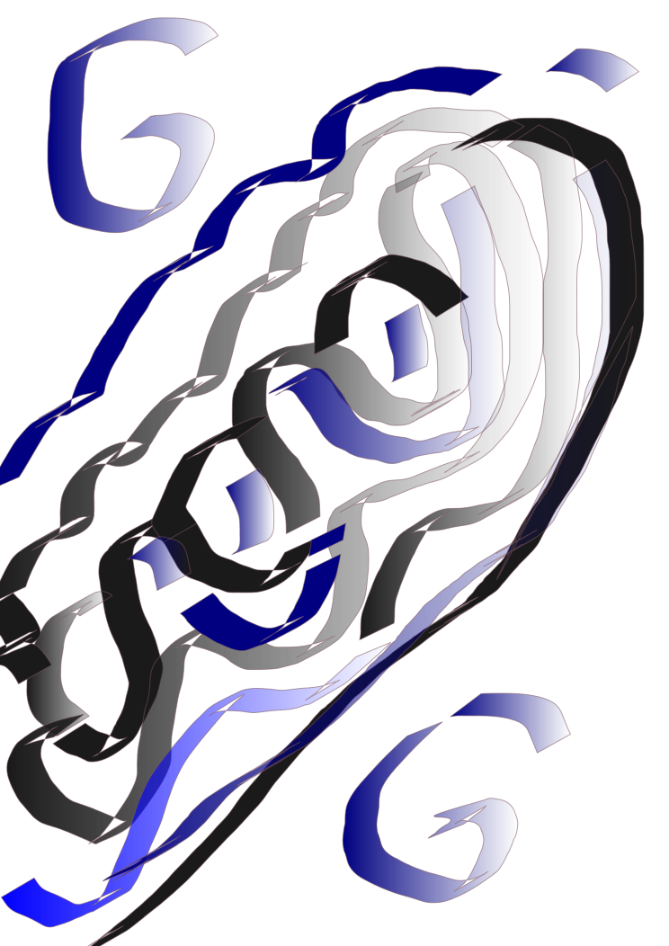 This features a blue and white design with the letter G prominently displayed. The G is surrounded by various other letters, creating an intricate pattern that resembles a shoe or a footprint. The design appears to be made up of different shapes and sizes of letters, giving it a unique and visually appealing appearance. Overall, the image showcases creativity and artistic expression through the use of letters as its primary elements.