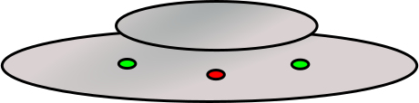 This features a cartoon-style silver shaded UFO with red and green lights. It is positioned in the center of the scene, taking up most of the space. There are three small circles on top of the UFO, each containing one of the colored lights. These circles are located at different positions around the central object, adding to its unique appearance. The overall design gives off a playful and imaginative vibe, reminiscent of a children's cartoon or an animated movie.