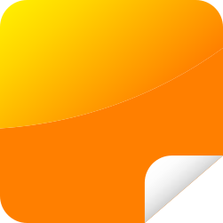 This features a square-shaped sticker with curved edges, predominantly in the color orange. It appears to be peeling slightly at the bottom right corner of the sticker. This design element adds an interesting visual effect and makes it stand out from other stickers or labels.