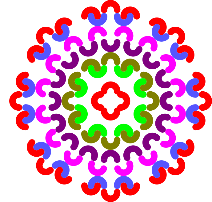 This features a large, colorful, and intricate design that resembles a flower. This artistic piece is composed of various shapes and colors, including red, green, blue, yellow, pink, orange, purple, and white. The design appears to be made up of multiple circles or other geometric shapes, creating an eye-catching pattern. The vibrant colors and intricate patterns make this artwork a captivating piece that can be appreciated by viewers for its creativity and visual appeal.
