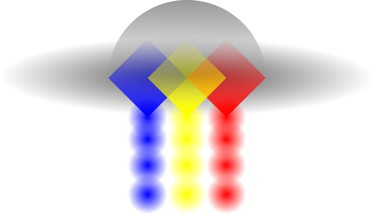 This features a unique and interesting design with three colored circles. Each circle is of different colors, including blue, yellow, and red. These circles are arranged in such a way that they appear to be floating or hovering above the ground. The overall effect creates an artistic and visually appealing scene.