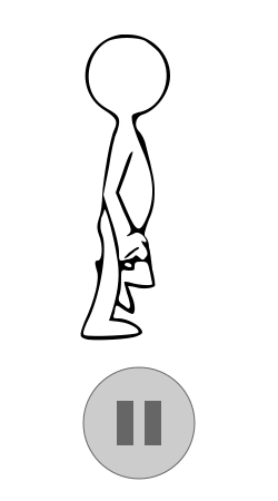 This features a man in the center, standing with his hands behind his back. He appears to be wearing black clothing and is depicted as a silhouette against a light brown background. A stop button can be seen below the man, indicating that he has been paused or stopped in motion. This could suggest that the image was captured during an animation or video sequence where the man's actions were frozen at this particular moment.
