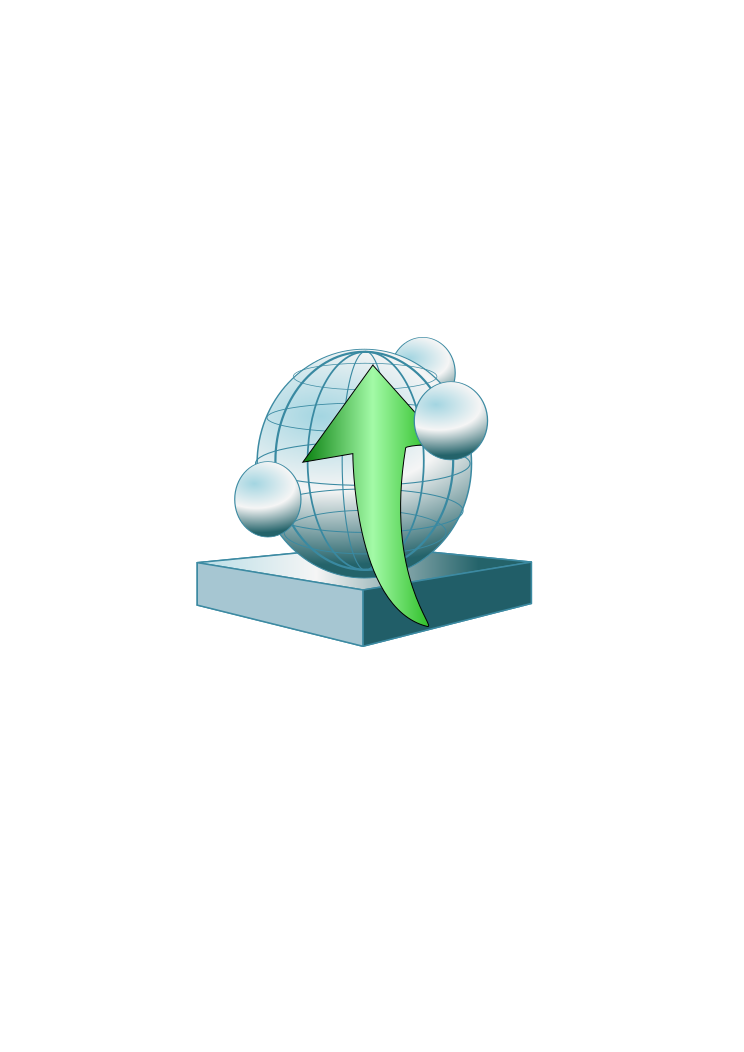 This features a computer-generated globe with an arrow pointing upwards. This unique design element is placed on top of a pedestal, giving it a sense of importance or prominence. The overall composition of the image suggests that this could be used as a desktop icon or a decorative piece for a computer user's workspace.