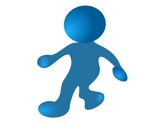 This features a blue walking figure, which is the main focus of the scene. This figure appears to be a person or an avatar, and it is depicted in various stages of movement as it walks across the screen. The figure's hands are positioned at its sides, while its feet are spread apart, giving the impression that it is actively walking. The blue color of the figure adds a sense of depth to the image, making it visually appealing and engaging for viewers.