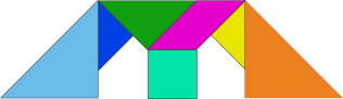 This features a colorful tangram shape, which is a three-dimensional puzzle made up of interlocking geometric shapes. This particular tangram consists of five triangles and one square, creating an interesting pattern that resembles a house or a building. Each triangle has different colors, adding to the visual appeal of the puzzle. The combination of these shapes creates a unique and intriguing design that can be both fun and challenging to solve.
