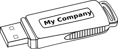 This features a white USB flash drive with the words "My Company" written on it. This type of device is commonly used for storing and transferring data between computers, smartphones, and other devices. The flash drive appears to be in good condition, ready for use by its owner.