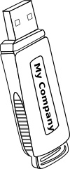 This features a white USB flash drive with the words "My Company" written on it. It is attached to a computer, and its design appears to be simple and minimalistic. The flash drive's label suggests that it belongs to a company, possibly for work or personal use. This type of device allows users to store and transfer files between computers, making it an essential tool in today's digital world.