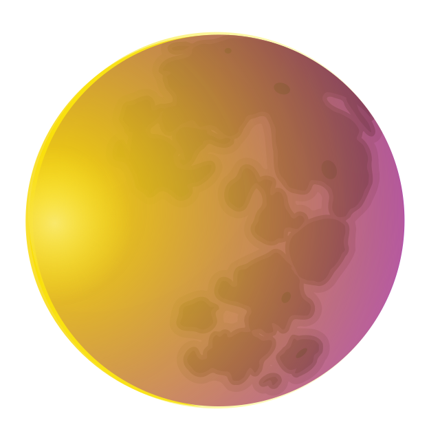 This features a large, round yellow object that appears to be a moon. It is set against a purple background, creating an interesting contrast between the two colors. The moon's surface has numerous small dots scattered across it, adding texture and depth to the scene. Overall, this unique composition showcases the beauty of the moon in relation to its vibrant surroundings.