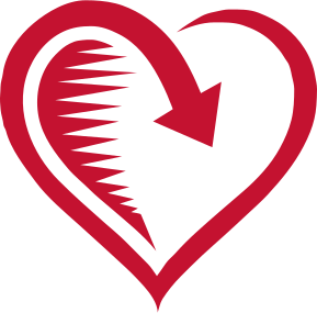 This features a red heart symbol with an arrow pointing downwards. This unique design gives the impression of a broken or damaged heart, possibly representing emotional pain or loss. The heart is prominently displayed in the center of the image, drawing attention to its distinctive appearance.