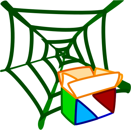 This features a green and white spider web with a colorful box placed inside it. The box is made up of different colors, including red, blue, yellow, and orange. It appears to be an artistic representation of the spider web, as the box is positioned in such a way that it seems to be part of the web's structure. This creative design adds visual interest and intrigue to the scene.