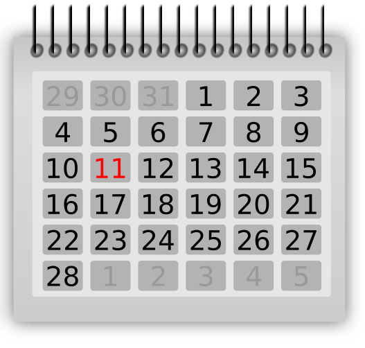 This features a calendar with the date of January 11th highlighted in red. The calendar is filled with numbers and dates, indicating that it is likely a daily planner or an appointment book. The red highlight on the 11th day stands out from the rest of the calendar, drawing attention to that specific date.