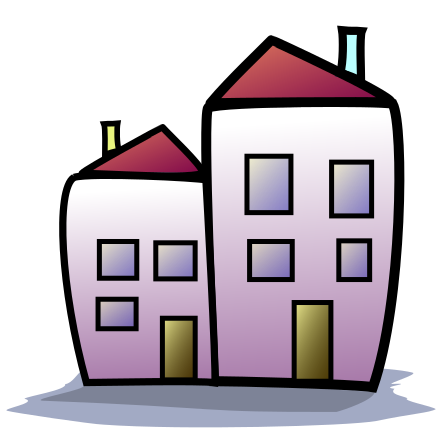 This features a colorful cartoon-like drawing of two houses, one red and the other white. They are positioned next to each other with their roofs visible in the scene. The houses have a unique design, giving them an artistic appearance. The overall composition of the image is visually appealing and captures the essence of the two houses in a creative manner.