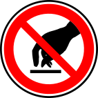This features a red and white sign with an illustration of a bird on it. The bird is positioned in the center of the sign, and its wings are spread outwards. The sign has a bold "No" written at the top, indicating that touching or interacting with the bird is prohibited. This could be due to hygiene concerns or other reasons related to public safety. The sign serves as a warning for people not to approach or touch the bird in any way.