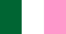 This features a colorful flag with three distinct colors: green, white, and pink. Each of these colors is displayed in varying shades, creating an eye-catching pattern. The flag appears to be a representation of the Republic of Newfoundland's flag, which is known for its unique design. The combination of these vibrant hues creates a visually appealing display that stands out against any background.