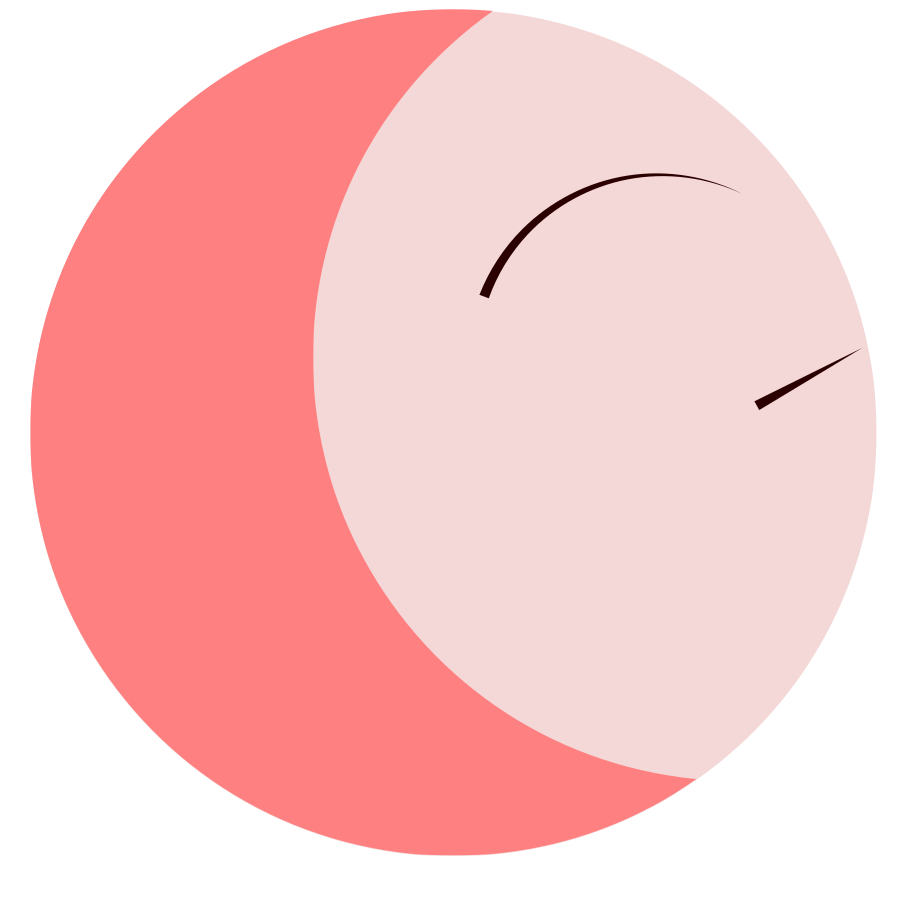 This features a pink circle with an eye drawn on it, giving the appearance of a smiley face. This creative design is reminiscent of a moon or a cartoon character's facial expression. The pink color adds a playful and cheerful touch to the overall composition.