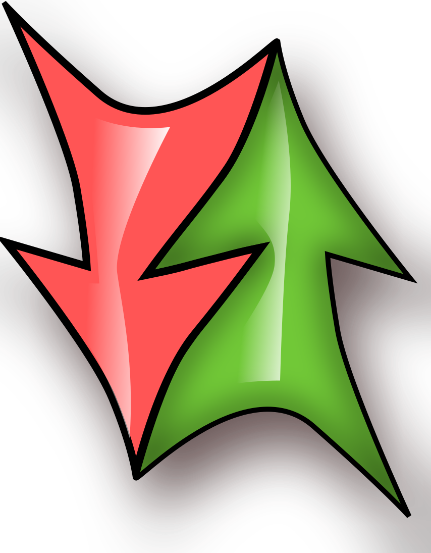 This features a red and green arrow, which is the main focus of the picture. The arrow has a three-dimensional appearance with its colors being vibrant and eye-catching. It appears to be a clip art or icon design, making it suitable for various applications such as digital media or public domain use.