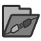 This features a folder icon with an arrow pointing to it. Inside the folder, there are several items including a pencil and two cords. The pencil is located towards the left side of the folder while the two cords are positioned closer to the center. This icon could be used for various purposes such as representing files or folders on a computer system or in an app.