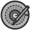 This features a circular object with an arrow pointing towards the center. This symbol is likely used to represent a target or a goal, as it is often associated with aiming and precision. The arrow's direction suggests that it is pointing towards something of interest or importance within the circle. The overall design of this icon appears to be simple yet effective in conveying its intended meaning.