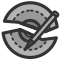 This features a small, round, and gray icon with an arrow pointing to the top right. This icon is part of the flat theme and appears to be a combination of a pen and a circle. The pen has a long handle, extending from the bottom left corner towards the center of the icon. The circle itself occupies most of the image, with the pen's handle extending outwards from it. Overall, this icon seems to represent a tool or an object that combines elements of both a pen and a circle.
