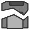 This features a square-shaped icon with a gray background. Inside the square, there is an outline of a jacket or coat, giving it a three-dimensional appearance. The jacket appears to be made up of several pieces, including a collar and buttons. The overall design gives off a sense of depth and complexity, making it visually interesting.