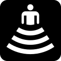 This features a black and white sign with an icon of a person sitting in the middle. This symbol is often used to indicate that there are restrooms or other facilities nearby. The sign appears to be a sticker, possibly placed on a surface like a door or wall. It could be found in various settings such as public places, offices, or even private homes.