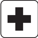 This features a white square with a black cross in the center. This symbol is commonly known as a medical cross or a red cross, and it represents healthcare services. The cross is surrounded by a white background, making it stand out prominently against the rest of the image.