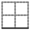 This is a square with four windows, each window has a grid pattern on it. The squares are white and the grid lines are black. This design gives the appearance of a checkered pattern. The windows are arranged in a way that they form a square shape. The overall look of this image is simple yet visually appealing.