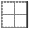 This is a square with a checkered pattern, featuring four smaller squares within it. Each of the smaller squares has a white background and a black border, creating an interesting contrast between the two colors. The overall design gives off a sense of depth and complexity, making it visually appealing.