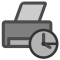 This features a brown and white clock with the hands on the numbers 12 and 3. It is positioned in the middle of an icon, which appears to be a printer or a fax machine. The clock's face is surrounded by a circle, giving it a distinctive appearance. The overall scene suggests that this image might be used as a symbol for a related service or product, such as printing or faxing.