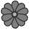 This features a black and white drawing of a flower, with the center being a circle. The flower is surrounded by a series of smaller circles that make up its petals. The overall design gives off an impression of a vintage or classic style. The drawing appears to be part of a larger collection, as it is described as a "flat theme" icon.