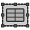 This features a square-shaped icon with a gray background. Inside the square, there is an array of smaller squares arranged in a grid pattern. These smaller squares are connected by chains, giving the impression that they are part of a larger structure or system. The overall design gives off a sense of organization and orderliness, which could be associated with concepts like storage or data management.