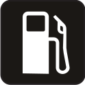 This features a gas pump icon, which is a symbol commonly used to represent fuel stations. This particular icon has an arrow pointing upwards and downwards, indicating the direction of fuel flow into the vehicle's tank. The black and white color scheme adds a classic touch to the design.