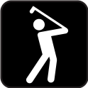 This features a black and white sign with an illustration of a man swinging a golf club. This sign is likely meant to represent the sport of golf, possibly indicating a nearby golf course or club. The man's action of swinging the club is captured in detail, showcasing his skill and technique. The image also includes a few other signs, but they are not as prominent as the main subject matter. Overall, this sign serves to convey information about the sport of golf and its associated activities.