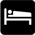 This features a black and white sign with an illustration of a bed. The bed is positioned in the center of the sign, taking up most of the space. The sign appears to be a symbol or icon representing a place where people can rest or sleep, such as a hotel or motel. The simplicity of the design and the use of black and white colors give it a classic and timeless appearance.