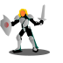 This features a cartoon character dressed in medieval armor, holding a sword and shield. This warrior-like figure is the main focus of the scene, standing confidently with his weaponry at the ready. The character's outfit includes a helmet, which adds to the overall medieval theme of the image. The combination of the armor, sword, and shield creates an action-packed and adventurous atmosphere that showcases the character's strength and preparedness for battle.