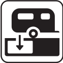 This features a square sign with an arrow pointing to the right, indicating that there is something behind it. On top of this sign, there is a picture of a trailer, which suggests that the sign might be related to transportation or parking facilities. The combination of the arrow and the trailer on the sign creates a clear visual representation for viewers to understand its intended purpose.