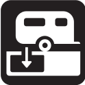 This features a square icon with a black background, which is an icon for a trailer. It appears to be a simple and minimalistic design, likely used in various contexts such as digital media or entertainment. The icon's shape suggests that it could represent the concept of a trailer, possibly indicating its purpose or function within a particular platform or application.
