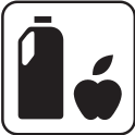 This features a bottle of juice, possibly apple juice, with an apple symbol next to it. This symbol is likely used as a visual representation for the type of beverage being sold or consumed. The apple symbol appears in various sizes and positions within the image, emphasizing its importance as a key element of the scene.