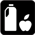 This features a black and white sign with an apple and a bottle of milk on it. The apple is positioned to the right of the milk, while both are placed above a heart symbol. This unique combination of elements suggests that the sign might be promoting healthy eating habits or encouraging people to consume more fruits and dairy products. The black and white color scheme adds an artistic touch to the design, making it visually appealing and easy to read.