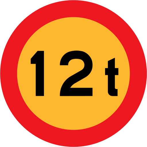 This features a red and yellow circle with the number 12 written in black. The circle is placed on top of a white background, making it stand out prominently. This could be an indication of a speed limit or other traffic regulations for drivers to follow. The combination of red and yellow colors suggests that this sign may be used in Sweden, as these are the standard colors for road signs in that country.