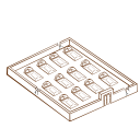 This features a white drawing of a wooden box with multiple compartments. There are sixteen compartments in total, each one filled with small drawings or images. These compartments are arranged in rows and appear to be organized neatly within the larger wooden structure. The overall design gives an impression of a well-maintained and orderly graveyard, with each grave space meticulously marked and maintained.