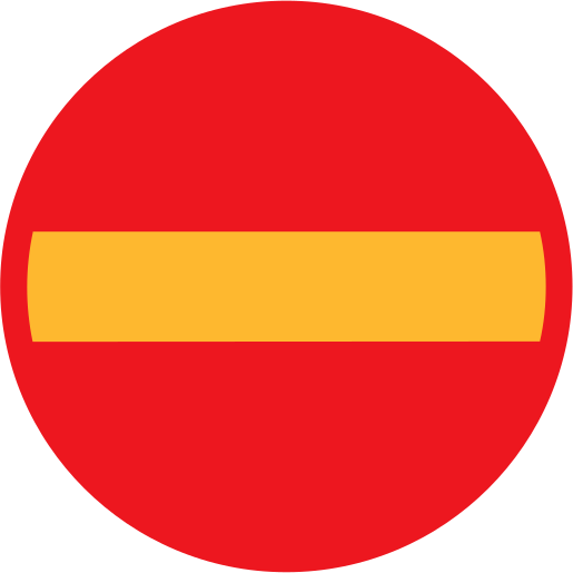 This features a red circle with an orange stripe, which is likely a no entry sign. This type of sign is commonly used to indicate that vehicles are not allowed to enter the area or roadway. The bright colors and bold design make it easy for drivers to notice and follow the rules. The sign's placement in the center of the image emphasizes its importance as a visual cue for road users.